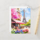 A gorgeous watercolor travel postcard capturing the essence of Paris in bloom. This vibrant illustration features the Eiffel Tower, a charming street café, and colourful flowers. Perfect for travelling, collecting, or sending notes to friends. A beautiful, impressionistic fine art print that evokes the romance of the City of Love.