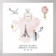 Blush pink watercolor france map wedding welcome poster featuring famous icons of paris. All elements are entirely customisable.