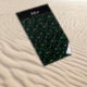 Watercolor pattern green leaf name black beach towel