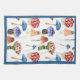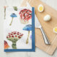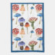 A whimsical pattern of various mushrooms in different shapes and colours. The mushrooms are illustrated with vibrant hues of red, blue, orange, and purple, featuring unique textures and polka dots on their caps.