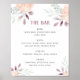 Watercolor peach flowers. Wedding bar drinks Poster