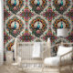 Elevate your space with this enchanting watercolor wallpaper, featuring a stunning hand-drawn peacock adorned with intricate mandala patterns. Vibrant sunflowers, swirling vines, and delicate roses intertwine in a harmonious, symmetrical composition, creating a rich bohemian aesthetic. The soft watercolor splashes enhance the depth and artistry of this design, making it a captivating focal point for nurseries, living areas, or creative spaces. Perfect for those who appreciate detailed craftsmanship and nature’s elegance, this wallpaper brings an air of sophistication and boho-inspired beauty to any interior.