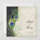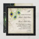 "Watercolor Peacock Feather Black Damask Wedding Invitation Invite." Elegant hand painted watercolor artwork of a peacock feather was created by internationally licensed artist and designer, Audrey Jeanne Roberts. Black background with parchment colours damask and lace subtle pattern. Copyright.