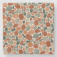 A seamless terrazzo style pattern made up of watercolor pebble like shapes in a palette of harmonious terracotta and green shades.
