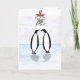 Watercolor Penguins with Holiday Mistletoe Card