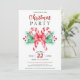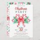 This Christmas party invitation design features watercolor peppermint candy canes, a large red bow with Christmas greenery such as holly with red berries, pine needles and red florals. You can customise all the text for your event. On the back of the invitation is a candy cane pattern with many of the same illustrations and more peppermint candy. See the whole matching collection.