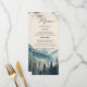 Transform your dining experience with the Watercolor Pine Tree Mountain Wedding Menu. Crafted on high-quality card stock, this menu features a tranquil watercolor scene of pine trees and majestic mountains, setting a rustic yet sophisticated tone for your meal. The menu details, displayed in a clear, modern typeface, add an element of refinement. Whether your wedding theme is outdoor, mountain, or rustic, this beautifully designed menu encapsulates the serenity of nature while elegantly presenting your selected dishes, making your wedding dinner a feast for both the eyes and the palate.