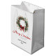 Celebrate the season of giving with this elegant Christmas wreath gift bag, featuring a classic watercolor design of pine branches, holly berries, and pine cones, accented with a red and green plaid pattern. The timeless red, green, and gold color palette adds a warm, festive touch that pairs beautifully with any holiday gift. Designed in a minimalist rustic style, this bag blends tradition and elegance perfectly. Personalize it easily with your family name or special message to make your presents extra meaningful. Perfect for gifting during Christmas gatherings, parties, and celebrations — a lovely way to wrap your holiday cheer with style and charm.