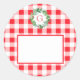 Watercolor Pine Wreath MONOGRAM Red Check Classic Round Sticker