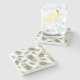 The coasters are gorgeous, a quality feel and heavy weight. They look like a precious archeological find. A rustic stone juxtaposed with a modern floral black and white print. I like the way the print goes slightly imperfect on the cut stone edges giving them a kind-of natural beauty.