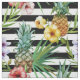 Watercolor pineapple tropical flower black stripes fabric