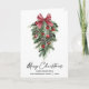 Modern Elegant Calligraphy Ink Script Watercolor Pines Winter Greenery with Burgundy Red Ribbon Bow Christmas Ornaments, Pine Cones and Holly Berries Merry Christmas Folded Holiday Card