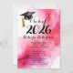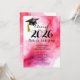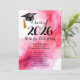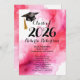 Vibrant hot pink wash watercolor background with white text and script graduation party invitations, perfect for a sweet sophisticated girly soiree!