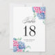 Add a fresh, floral touch to your event with this customisable table number card featuring watercolor blue and pink hydrangea bouquets with a matching floral pattern. Designed to suit garden weddings, baby showers, bridal showers, and spring or summer celebrations, this table number card helps create a cohesive, coordinated look across your tablescape.