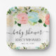 Watercolor Pink and Mint Flowers Baby Shower Paper Plate