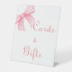 This elegant minimalist pink bow sign, Personalise the cards and gifts sign using your information, and if you want to change the style and font of the text, click the "Click to customise further" button.