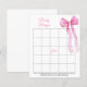 Watercolor pink bow Baby Bingo game