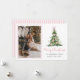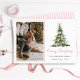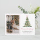 Watercolor Pink Bow Christmas Tree Photo Holiday Card