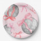 Watercolor Pink Bow Ribbon Silver Disco Ball Paper Plate
