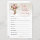 Embark on an exciting journey with the watercolor pink, brown, and ivory teddy Dear Baby Wishes game card designed for a girl baby shower with the "We Can Bearly Wait" theme. This whimsical and adventurous card invites guests to share their heartfelt wishes for the new baby, blending soft colours with a touch of playful charm. As you celebrate the impending arrival, let the guests' wishes for the little one set the tone for a magical and unforgettable event, full of joy and anticipation for the exciting adventure ahead.