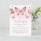 Watercolor Pink Butterfly First Birthday Invitation