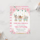 Watercolor Pink Circus Animals Birthday Party Invitation