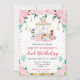 Watercolor Pink Circus Animals Kids Birthday Invitation