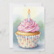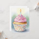 Watercolor-style birthday invitations featuring a delicate pink birthday cupcake with lit candle