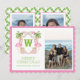 Watercolor Pink Flamingo Christmas Monogram Crest Holiday Card