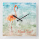 Watercolor Pink Flamingo | Tropical Island Time Square Wall Clock