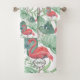 Watercolor Pink flamingos and leaves. Bath Towel Set