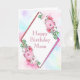 A watercolor pink floral diamond geometric frame birthday card for Mum.
