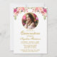 Modern Elegant Round Photo Frame Quinceanera Watercolor Pink Blush Floral Gold Invitation Card