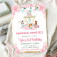 Watercolor Pink Flowers Animals Birthday Party Invitation