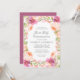 An elegant invitation with a delicate arrangement of pink watercolor flowers and vines in a oval pattern. The back of the card is designed with a diamond pattern to coordinate with the front.