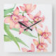 Watercolor Pink Flowers Square Wall Clock