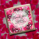 Thank you bridal shower stickers feature the bride's name, occasion and date on a background of hot pink flowers and leaves. MATCHING items in our collection.