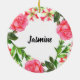 Watercolor Pink Flowers Wreath Circle Ceramic Ornament
