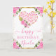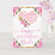 Watercolor Pink Gold Hearts Flowers Birthday Card