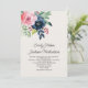 Watercolor Pink Navy Blue Flowers Wedding Invitation