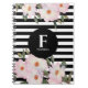 Watercolor Pink Roses Ballerina Stripes Monogram Notebook