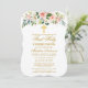 Elegant Watercolor Pink White Floral First Holy Communion Invitation includes pink roses, white flowers and greenery. Gold Cross. Bracket Style.