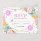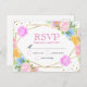 Gorgeous Watercolor Pink, Yellow and Blue summer flowers design with gold geometric frame, gold glitter confetti and stripes background