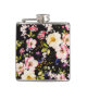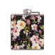 Watercolor Pink Yellow Roses Black Background Hip Flask