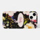 Watercolor Pink Yellow Roses on black, Monogram iPhone Case