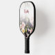 Watercolor Pink Yellow Roses on black, Monogram Pickleball Paddle
