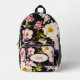 Watercolor Pink Yellow Roses on black, Monogram Printed Backpack