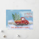 Watercolor Plaid Red Truck Snow Merry Christmas Holiday Card
