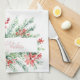 Watercolor poinsettia and greenery Christmas Tea Towel