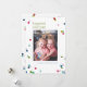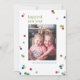 The Watercolor Polka Dot Poms New Year's Photo Card is a spirited and stylish way to welcome the upcoming year. This card showcases a single, cherished photograph framed by festive watercolor polka dots in a delightful palette of green, pink, blue, and red against a clean white background.
